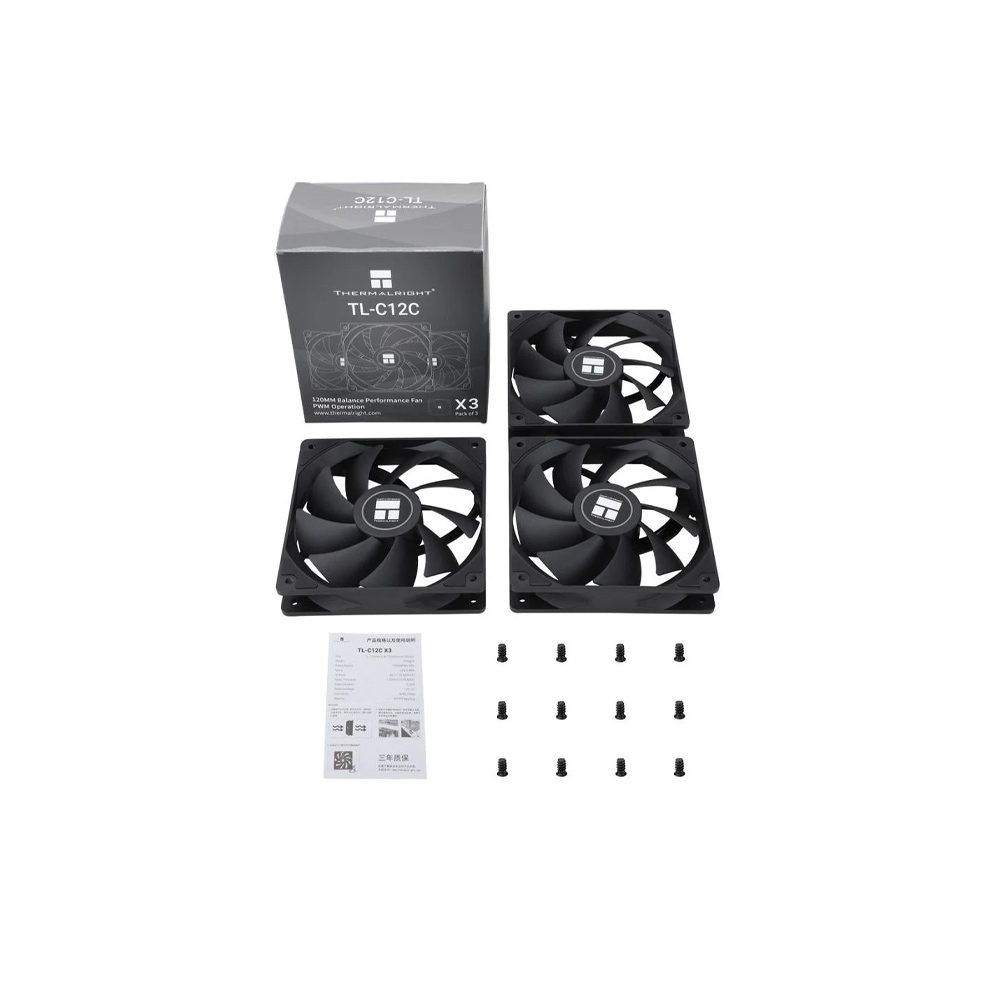 QUẠT TẢN NHIỆT THERMALRIGHT TL-C12C X3 BLACK (MÀU ĐEN/120MM/ BỘ 3 QUẠT)
