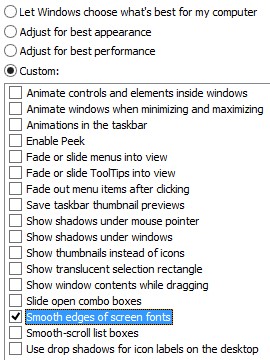 2.    Tại phần bên dưới bạn tích chọn Smooth edges of screen fonts – Để đảm bảo hiển thị Font chữ tốt.