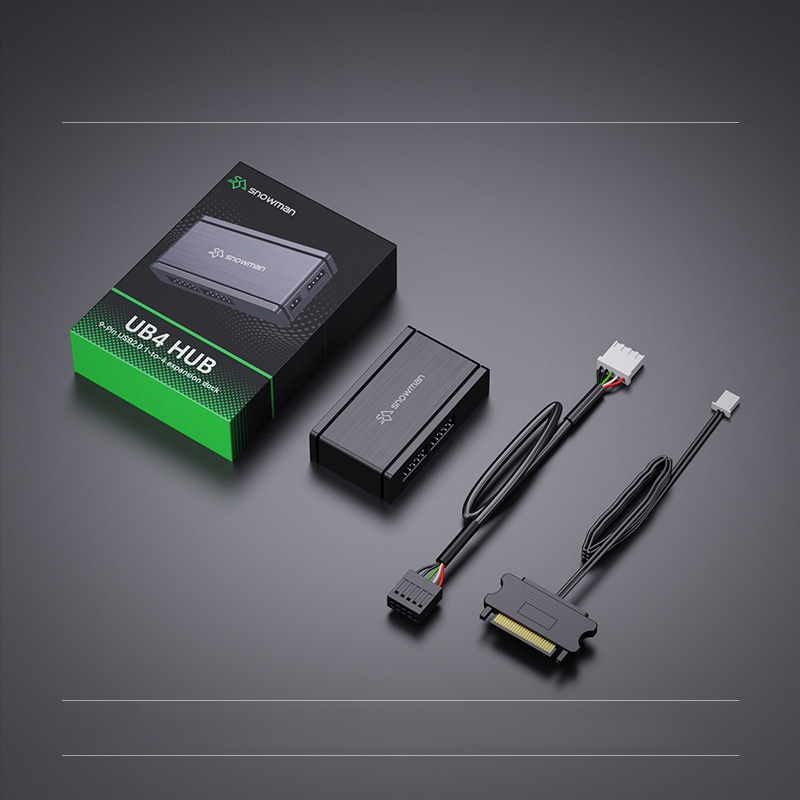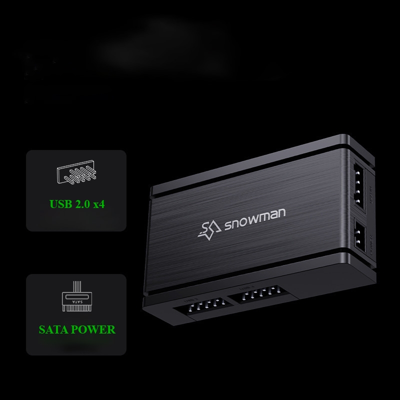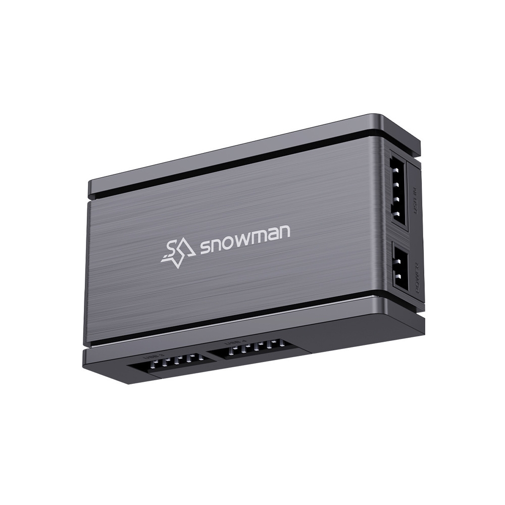 SNOWMAN UB4 HUB là bộ chia USB 2.0 sử dụng chân USB 9-pin trên mainboard, cho phép mở rộng 1 cổng USB 2.0 thành 4 cổng USB nội bộ, đáp ứng nhu cầu kết nối thêm các thiết bị như hub RGB, quạt, controller, LCD, AIO, USB header nội bộ…